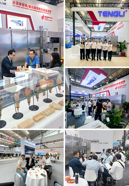 從漿料上料、烘烤、包卷成型、脫模、輸送成品直到堆疊計數均全自動運行。 在生產過程中,憑借精密的傳感器和自動化控制系統,實時監測和調整溫度、濕度、時間等關鍵參數,確保每一個脆筒都擁有一致的高品質。無論是脆筒的色澤、口感還是形狀,都達到了極致的完美。 烘焙線整套工藝展現出無與倫比的精準與細膩,讓每一個脆筒都散發著誘人的香氣和完美的口感。 高效生產,滿足需求 快速、穩定、高效,無論是大規模訂單還是個性化需求,這條烘焙線都能從容應對。快速響應市場,滿足消費者的味蕾渴望。 設備產能為1200-12000只/小時。同一臺烤爐,選擇不同的成型裝置,就可以生產圓餅、蛋筒(平口/自然邊)蛋卷、脆皮碗狀杯等規格形狀不同的產品。 它的高效運作,大大提高了生產效率,滿足了市場對美味脆筒的巨大需求。 |